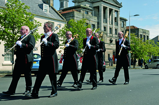The mace is made from silver and wood – with indigenous Scottish light ash for the shaft – and some gold and mixed metals in the detail. The ornamentation symbolises sand or beaches, water and air, while the lower mount is adorned with three 18ct yellow gold wires depicting mountains. A concave plate is mounted at the very bottom of the mace, reflecting the theme of water and waves.