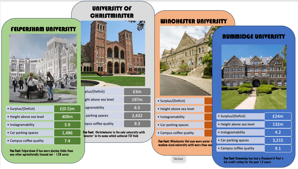 Back in 2017 we launched the first ever University Top Trumps. The game generated huge excitement in common rooms and coffee shops across the sector, with many calling for more editions to stimulate fun and pleasure in an increasingly challenged HE environment. Our creative team has therefore been working diligently over recent months and, at last, we are able to announce the launch of the first in a new series of the legendary and much loved Uni Top Trumps game.