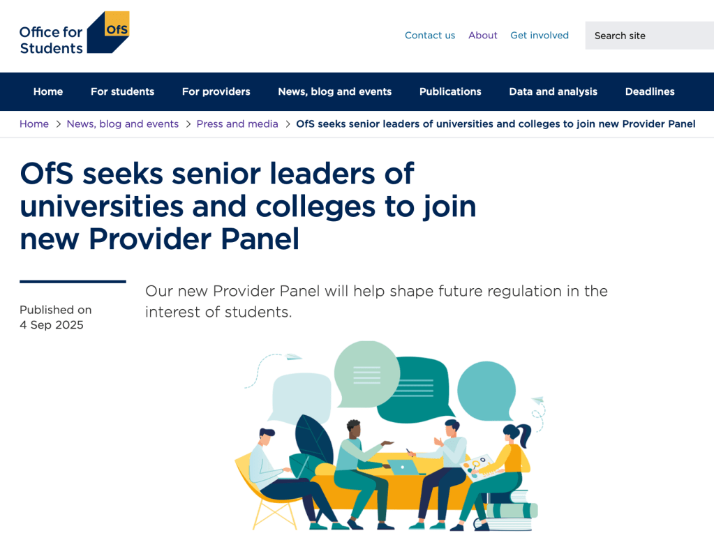 This feels like a really important step. The only issue I would have with the set up here is that I strongly feel the Provider Panel should include relevant senior personnel (such as Registrars or COOs) with direct experience of regulatory engagement and delivery. Vice-Chancellors have the broad knowledge and the heft to make their views known but reinforcing their critique with operational detail would, in my view, maximise the likelihood of success for the new panel.