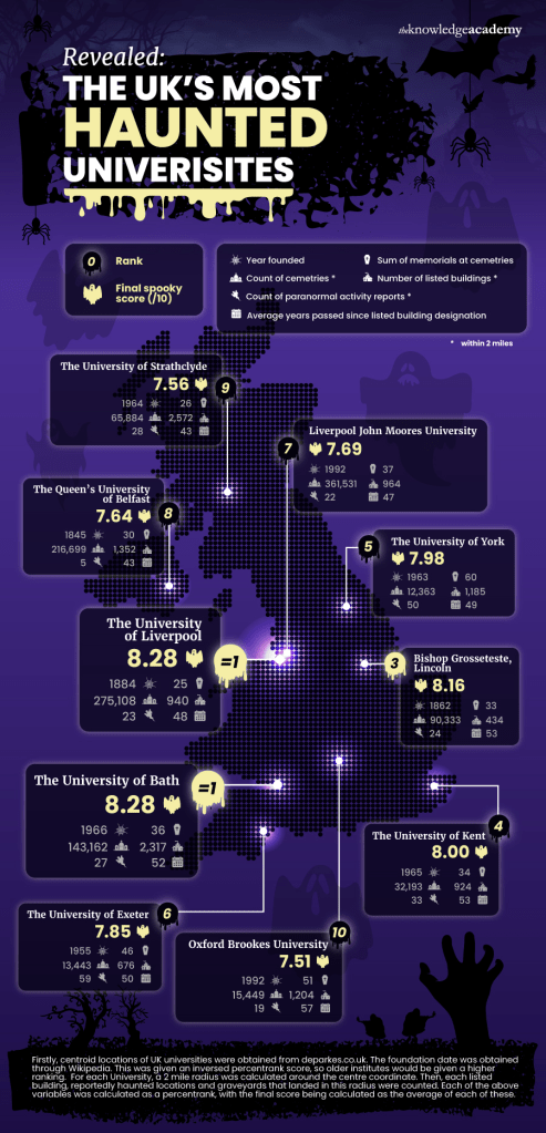 If I were forced to produce a ranking of pointless and utterly tenuous Halloween-related league tables then this one would definitely be top. Produced back in 2023 by an organisation called the Knowledge Academy (not currently on the OfS Register) this ranking has its own methodology and everything.